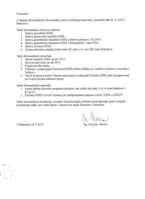 uznesenie Valného zhromaždenia, 25.4.2015