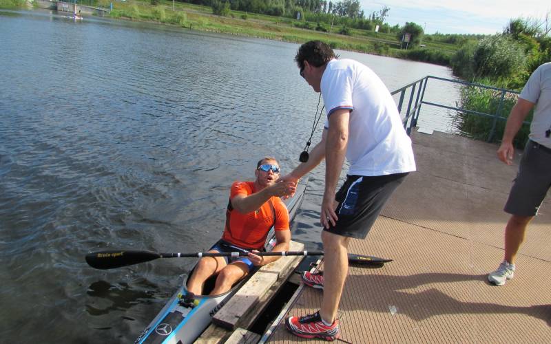 „Nie je to len vizita z pozície šéfa zväzu, ale hlavne nám ide o to, aby sme zistili momentálny stav výkonnosti členov našej olympijskej K4. Absolvujú test anaeróbych schopností" vraví na margo svojej inšpekčnej cesty Petriska.