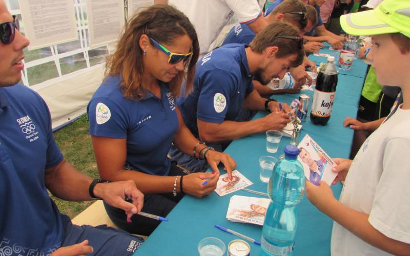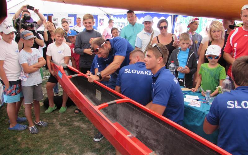 „Privítanie bolo úplne najlepšie," komentoval srdečné prijatie na Zemníku člen štvorkajaku Juraj Tarr. Potom si už on, jeho traja kolegovia z posádky K4 Erik Vlček, Tibor Linka a Denis Myšák, Peter Gelle, Vincent Farkas a jediná dáma Martina Kohlová posadali v stane zasvätenom histórii tohto úspešného športového odvetvia na Slovensku. Ani sa nestačili poriadne usadiť a museli čeliť doslova invázii záujemcov o autogramy.